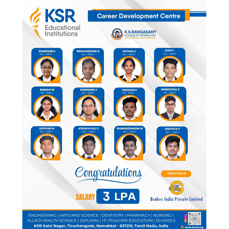 We take pride in shaping bright futures! Congratulations to our talented graduates who have secured top placements in leading companies. Your hard work, dedication, and passion have paid off!